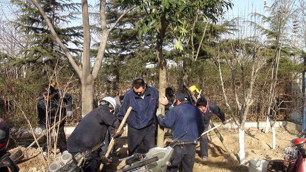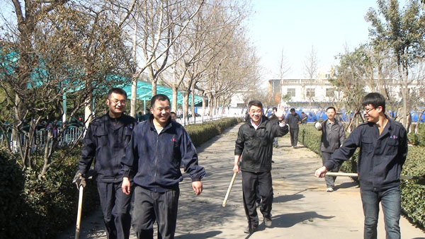 每年一度的“3月12日植樹節(jié)”在山東淄博太極搪玻璃設(shè)備公司年年都過。由于全國各地廣大用戶對太極搪玻璃反應(yīng)釜等搪玻璃設(shè)備的需求越來越大,所以生產(chǎn)進度絕對不能耽誤,車間工人這天都會緊鑼密鼓的努力生產(chǎn)工作,所以植樹種花美化太極家園的任務(wù)則由公司辦公后勤人員來完成,在領(lǐng)導的分工安排下,吊卸組、修剪組、轉(zhuǎn)運組、挖坑組、種植組、支架組、澆灌組等分工明確、井然有序大家一同努力來把太極家園美化。