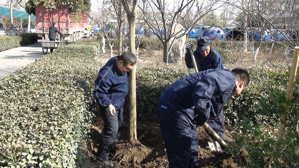 2014年3月12日本次植樹節(jié)淄博太極搪玻璃設(shè)備公司共植樹200余株,女貞、青松、桃樹等,種花300余棵月季、牡丹、迎春花等。太極公司占地20.6公頃車間面積擴充至8公頃其余面積均為綠化面積,太極搪玻璃設(shè)備公司早在2003年桓臺太極搪玻璃設(shè)備工業(yè)園建成之時就被評為“花園式工廠”先進單位。每年都會有新的樹木落戶太極,如今的淄博太極四季常青,“春天處處花枝招展,夏天處處綠樹成蔭,秋天到處碩果累累,冬天處處也都生機勃勃。”……