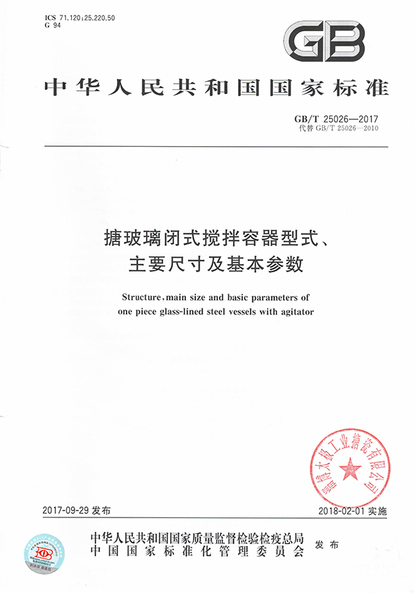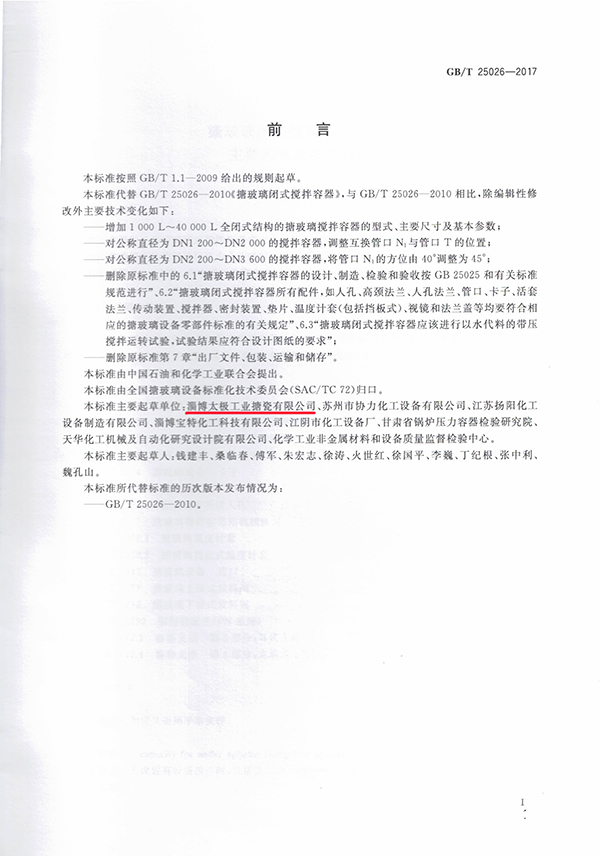 淄博太極以第一單位身份參與制定《搪玻璃閉式攪拌容器》、《搪玻璃開式攪拌容器》《搪玻璃設(shè)備技術(shù)條件》3個國家標準