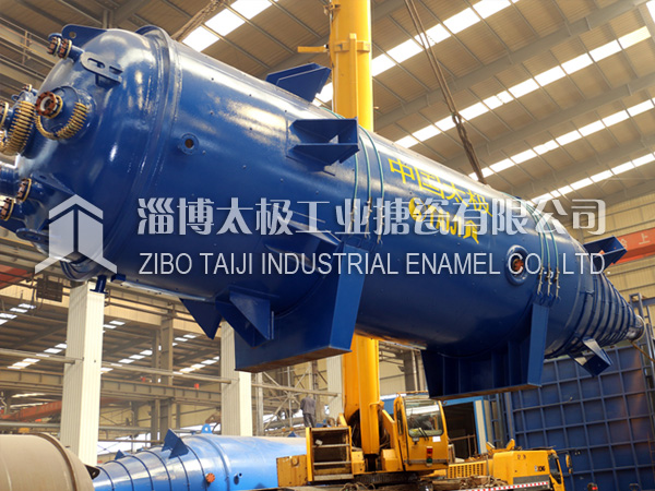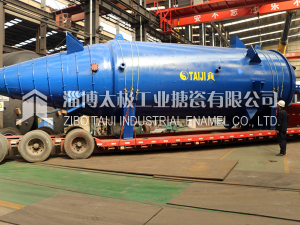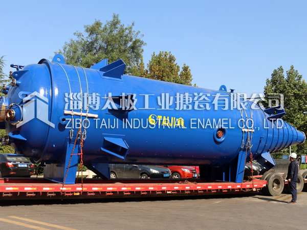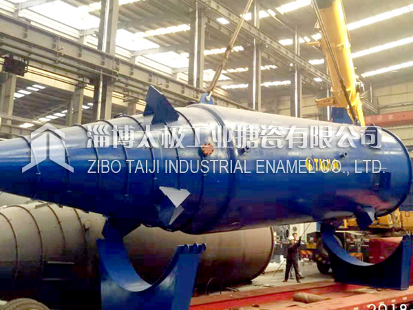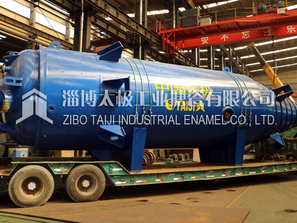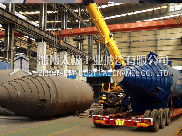 150533666012018年10月10日,兩臺(tái)目前國(guó)內(nèi)最長(zhǎng)的搪玻璃設(shè)備搪玻璃錐形反應(yīng)釜(60000L)在太極制造完畢,并順利圓滿裝車運(yùn)往用戶基地。根據(jù)技術(shù)部提供的參數(shù),該設(shè)備長(zhǎng)度為13.8米,是目前國(guó)內(nèi)最長(zhǎng)的搪玻璃設(shè)備