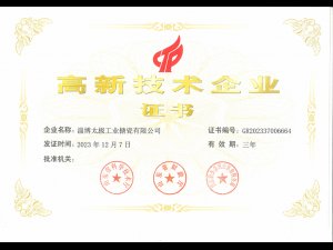熱烈慶祝淄博太極工業(yè)搪瓷有限公司榮獲“高新技術(shù)企業(yè)”榮譽(yù)稱號(hào)